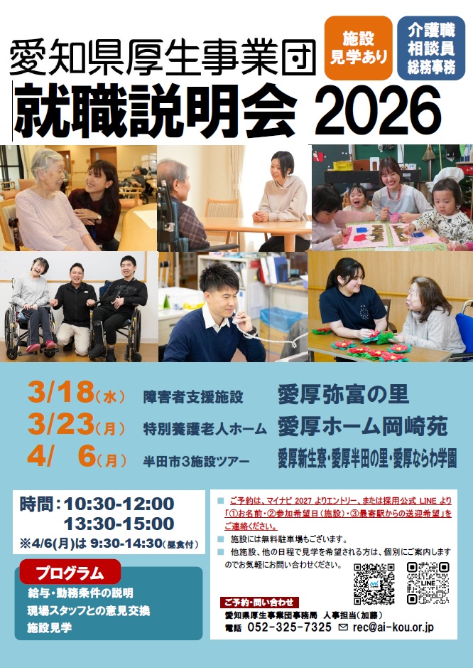 愛知県厚生事業団では、法人就職説明会を3月より順次開催します。